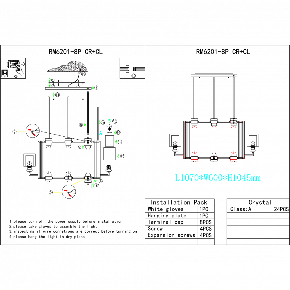 Светильник подвесной iLamp King RM6201-8P CR+CL