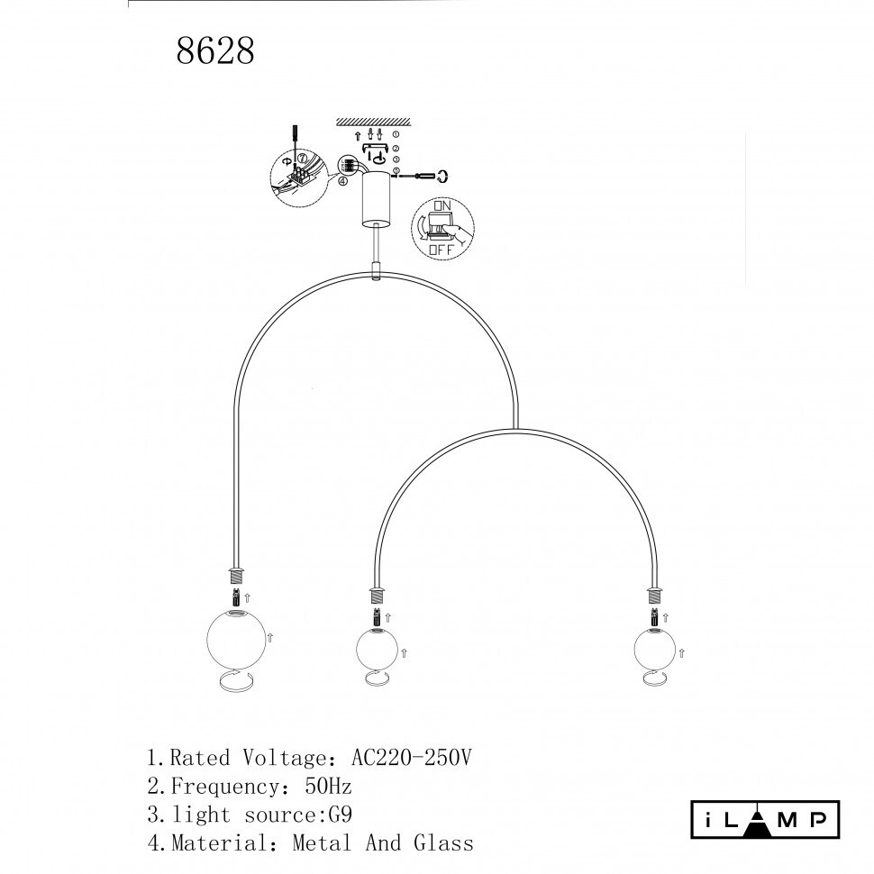 Подвесной светильник iLamp NORTH 8628P/3 BLACK&WHITE