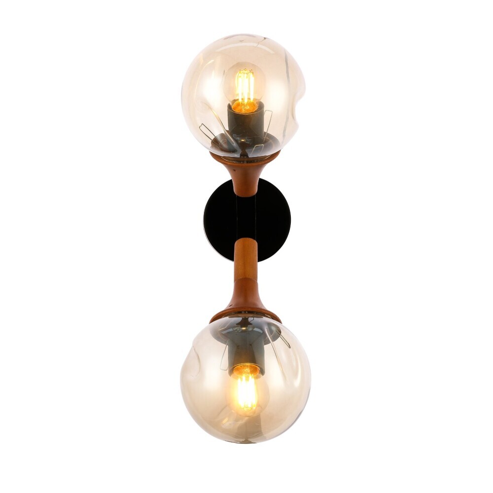 SLE109401-01 Светильник настенный Черный, Темное дерево/Прозрачный, Янтарный E27 2*60W RAQUEL