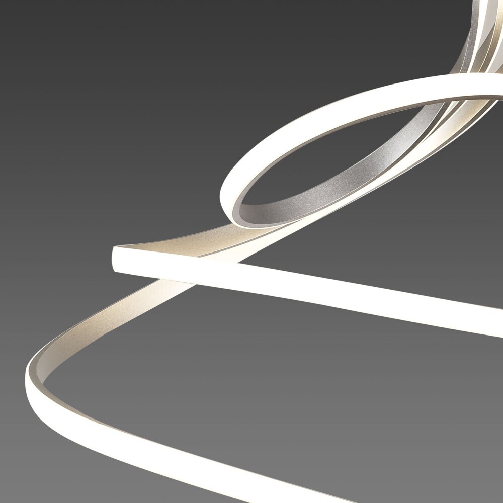 Доминантой коллекции становится потолочный светильник с двумя световыми петлями в форме знака бесконечности, передавая образ цикличности света. Масштабные светильники коллекции будут хорошо смотреться в элегантной гостиной в сочетании с отсылками к органичности или в обеденной зоне в качестве главного источника света.