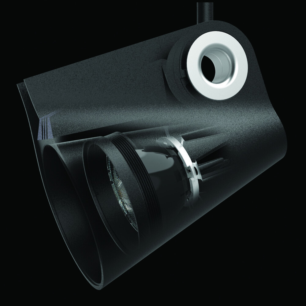 Трековый светильник дает пользователю больший контроль над атмосферой помещения: споты можно включать и выключать по одному или группами, регулировать их яркость, направление освещения и его характер. Потолочные споты позволяют разделить просторную комнату шоурума или галереи на зоны и комфортно осветить каждую из них. В маленьких помещениях, таких как коридор или витрина, споты незамени