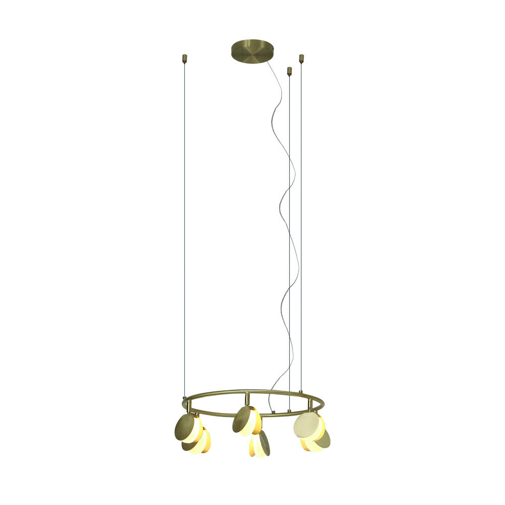 SHELL является крайне изящной коллекцией. Она несет в себе образы вдохновения дизайнера, напоминая форму раскрывающихся ракушек или порхание стаи мотыльков. Тонкие золотые пластины распахнулись, чтобы выпустить мягкий светодиодный свет из основания формы. Множество маленьких ракушек закреплено на широком обруче. Он словно парит в воздухе, благодаря едва заметной системе подвески.