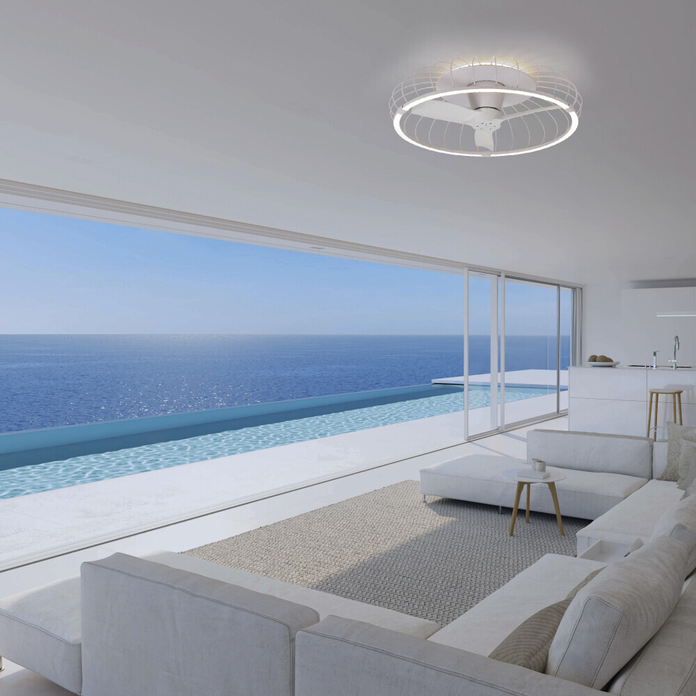 светодиодным кольцом. Вентилятор оснащен открытым металлическим куполом в
