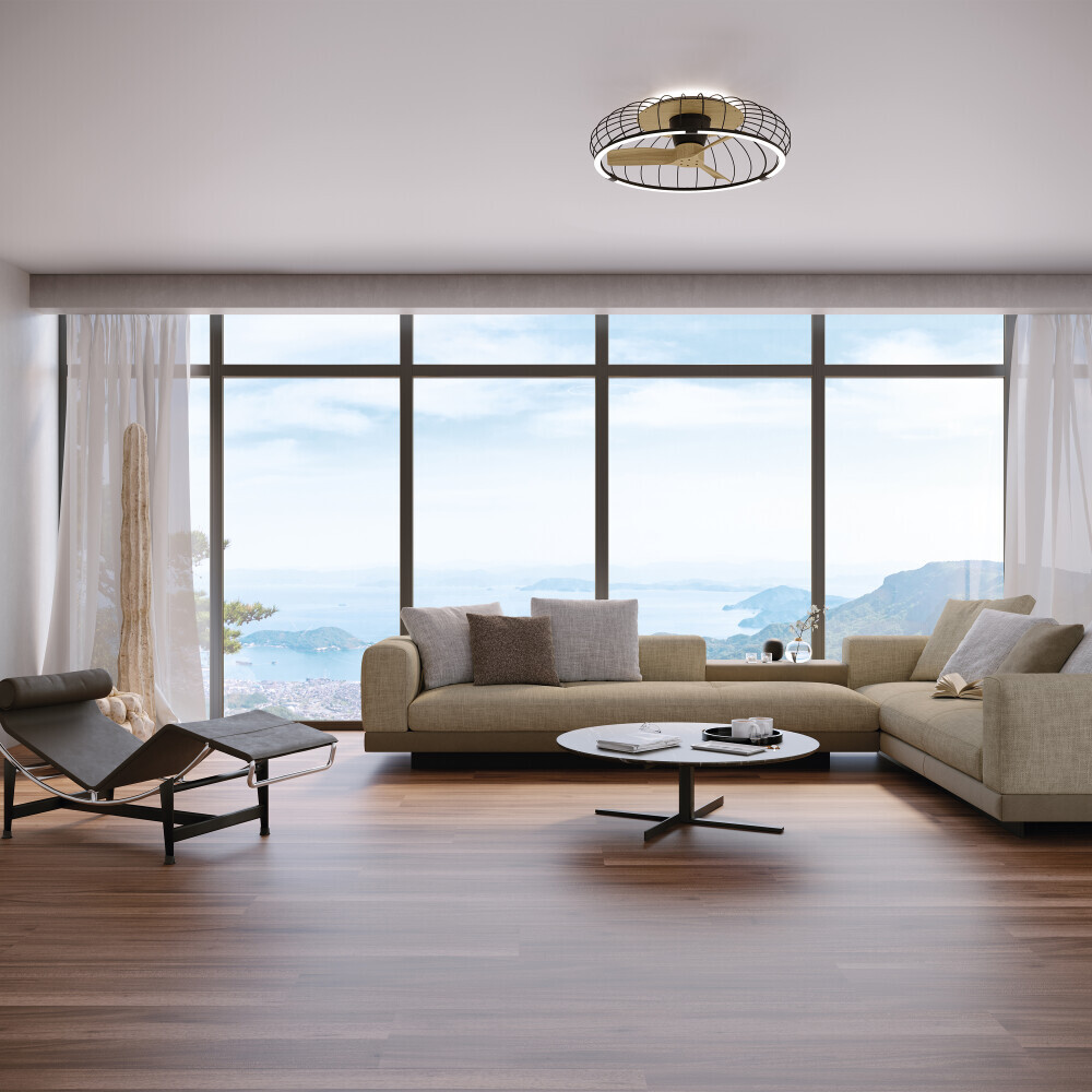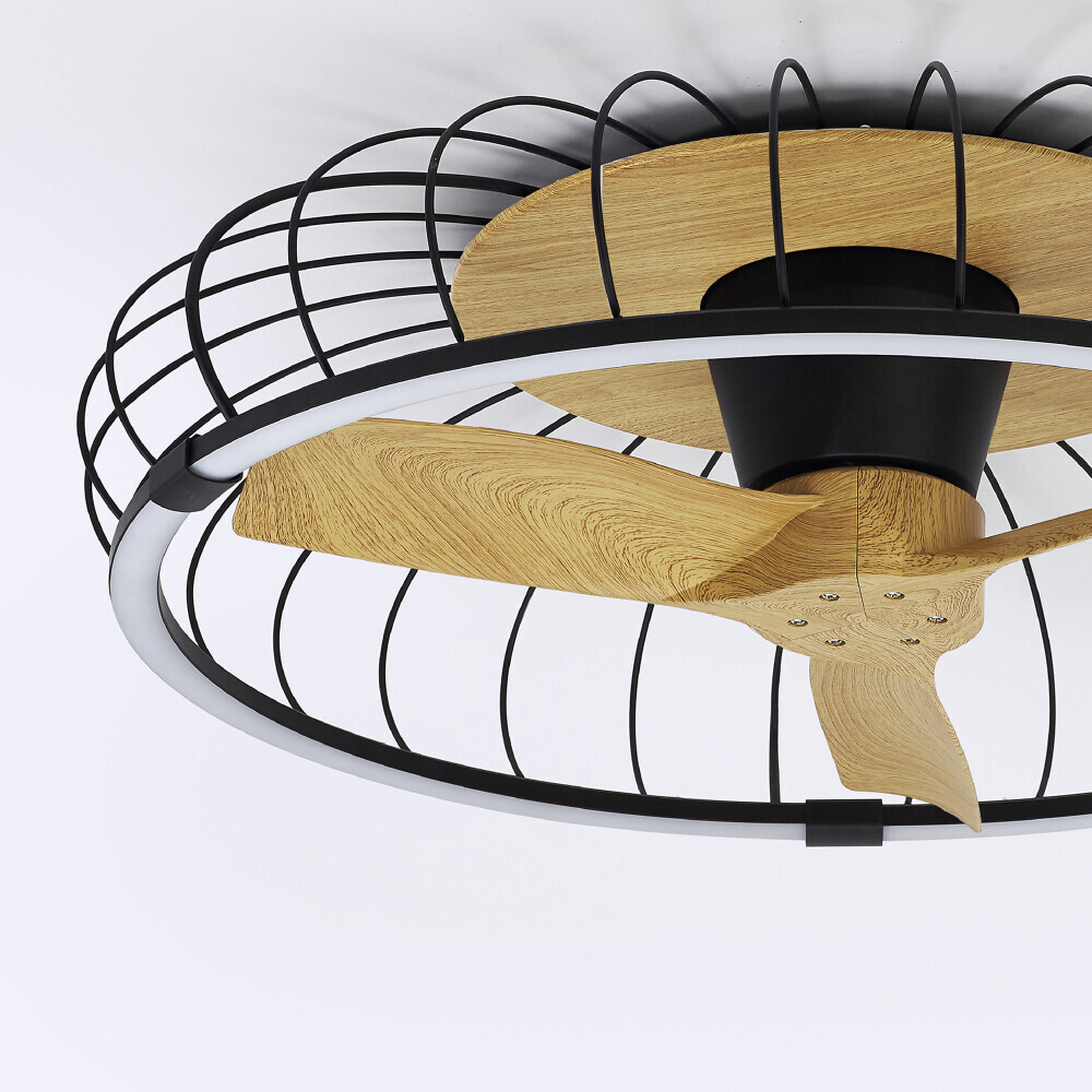 светодиодным кольцом. Вентилятор оснащен открытым металлическим куполом в