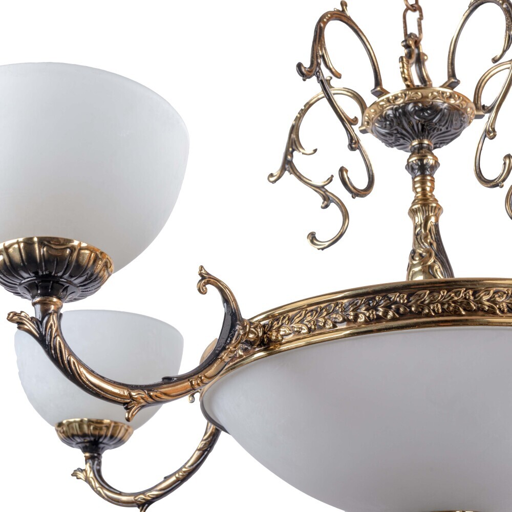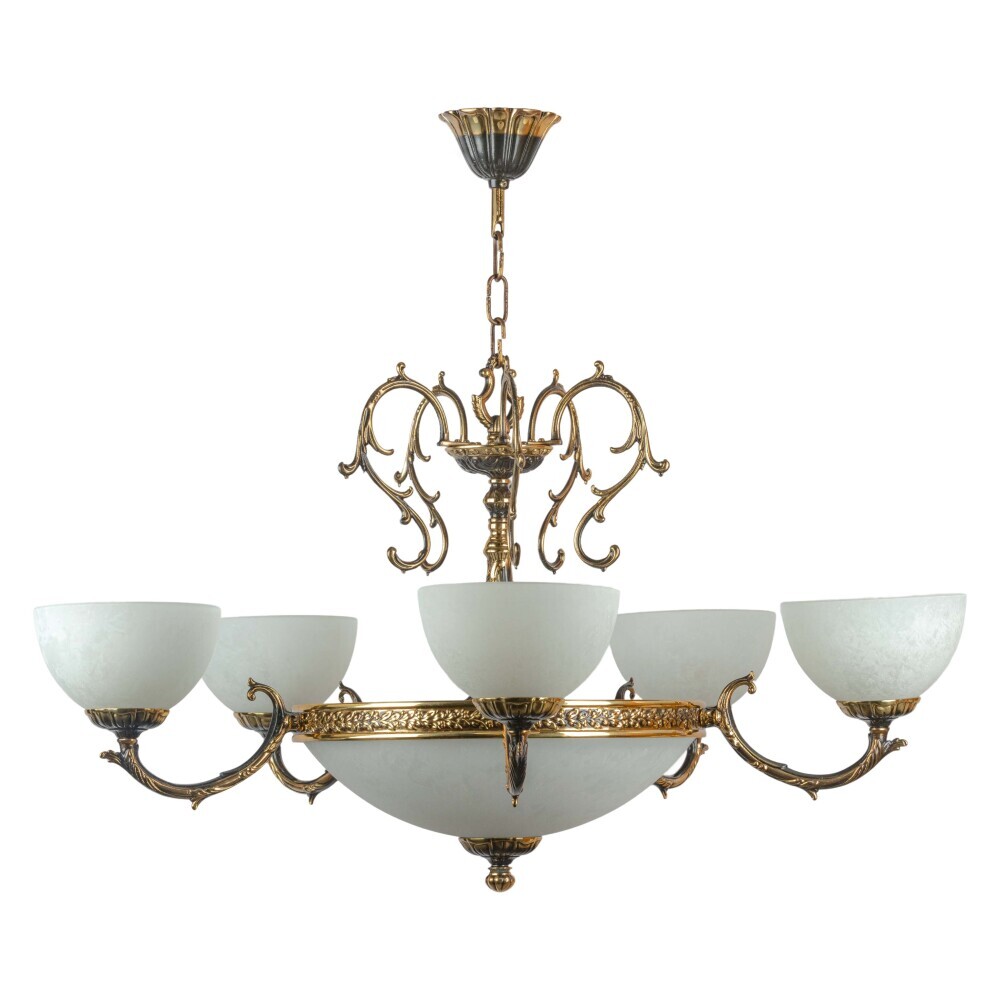 Люстры из коллекции станут центральным элементом любого интерьера. Их плафоны из матового стекла мягко рассеивают свет, создавая уютную атмосферу. Завитки и орнаменты латунного каркаса напоминают о классических традициях, но при этом выглядят современно и стильно. Такие люстры идеально дополнят гостиную, столовую или зал для приёмов.