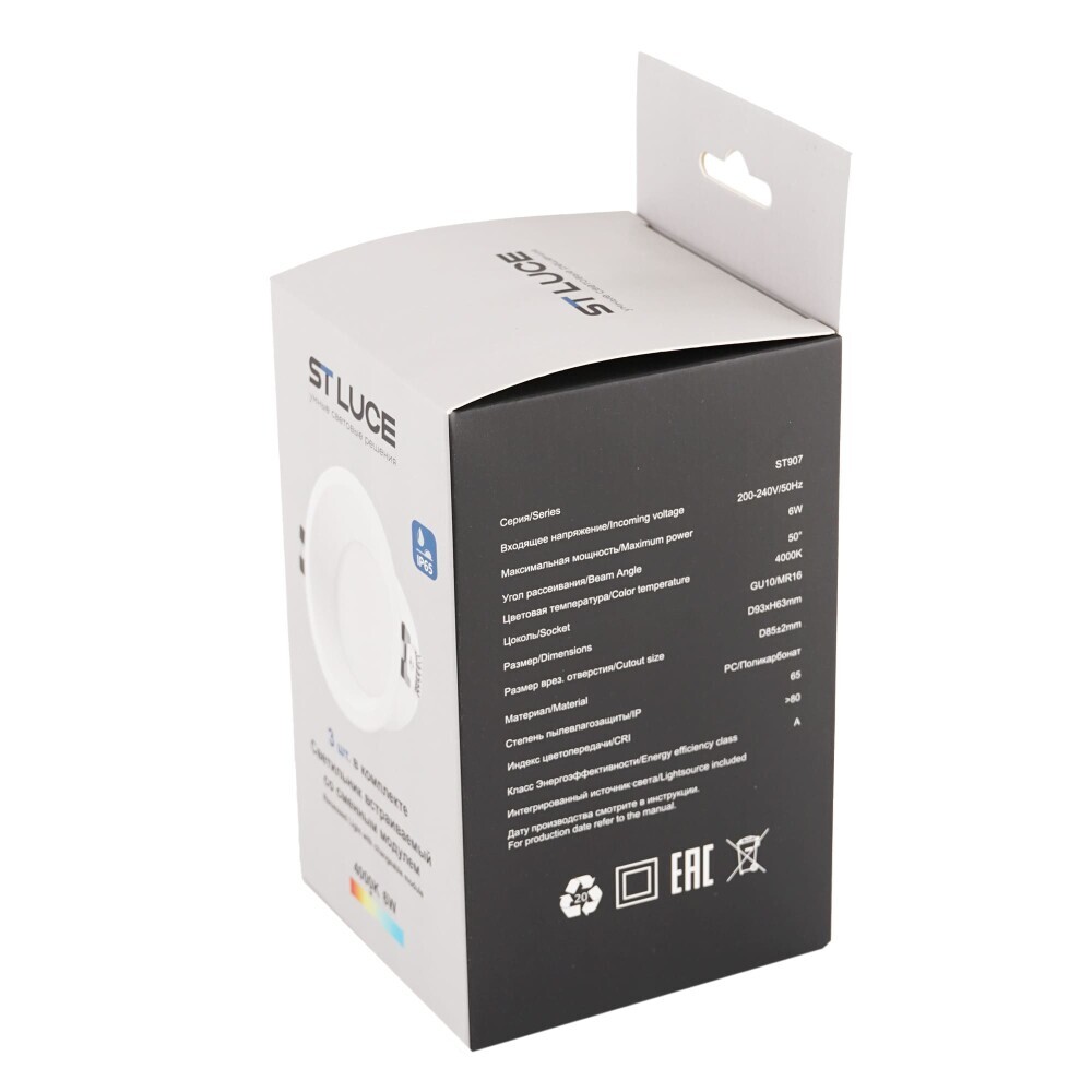 ST907.518.01_3 Светильник встраиваемый со сменным модулем ST-Luce белый/прозрачный LED 1*5.6W 4000K Встраиваемые светильники
