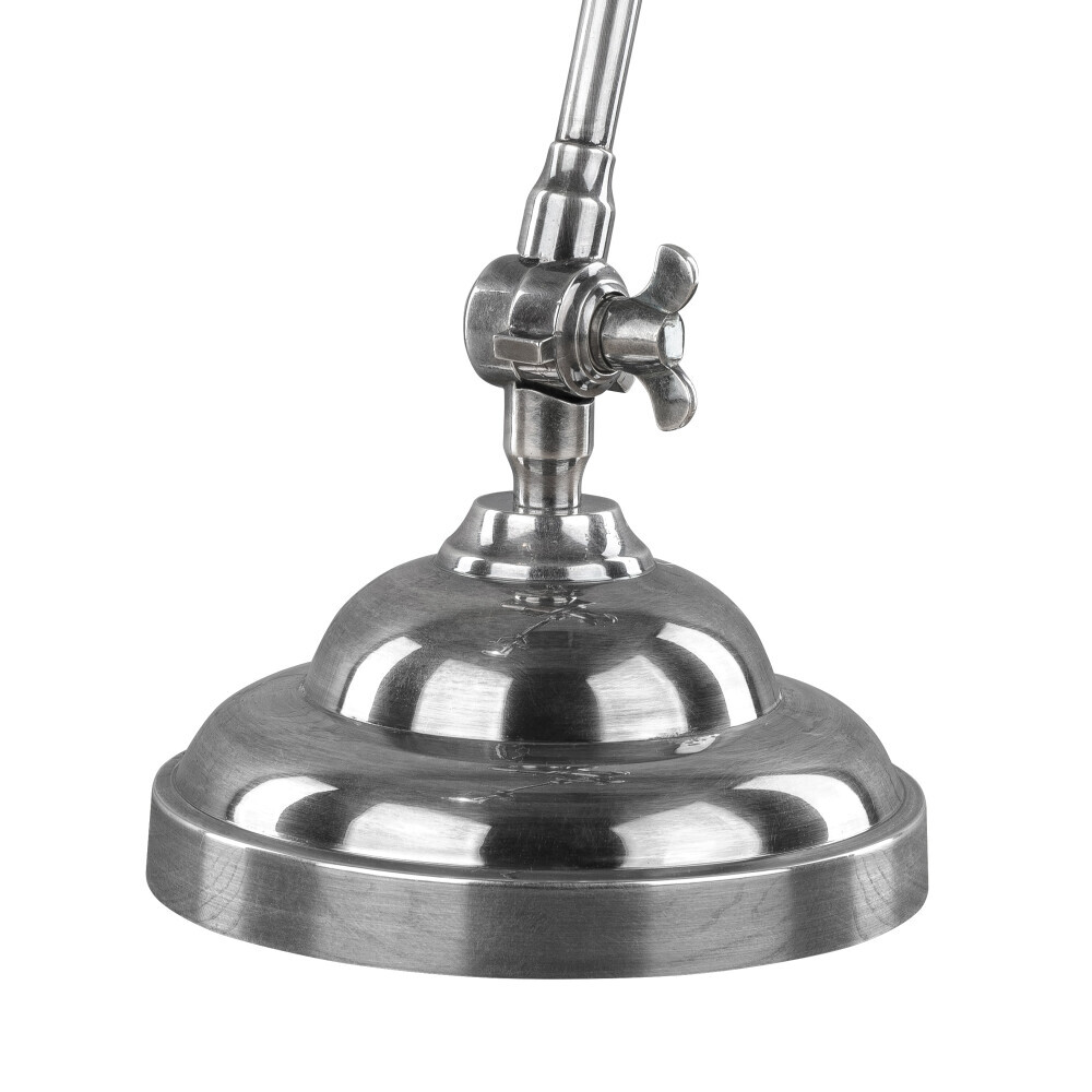 Небольшая настольная лампа из латуни на устойчивом основании подойдет для освещения или подсветки любых зон в интерьере, картин, милых сердцу безделушек, рабочего места. Два шарнира - у основания лампы и на разрыве штанги позволяют регулировать как угол наклона, так и высоту освещения. Плафон дополнительно вращается на 60 градусов. Резьбовое соединение внешнего ободка плафона позволяет снимать его и легко менять лампочку в случае необходимости.