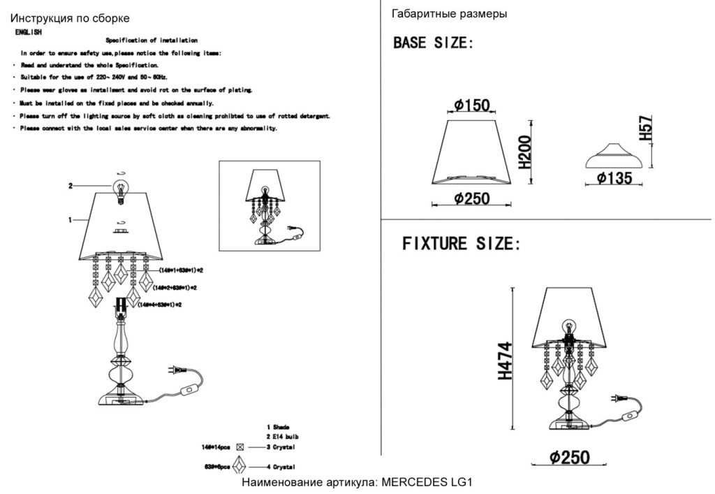 Настольная лампа Crystal Lux MERCEDES LG1 GOLD/COLOR