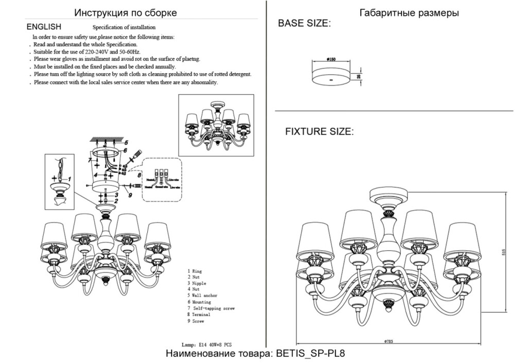 Люстра Crystal Lux BETIS SP-PL8