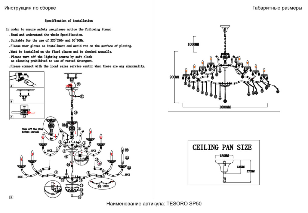 Люстра Crystal Lux TESORO SP50