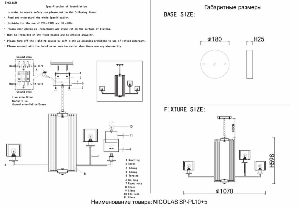 Люстра Crystal Lux NICOLAS SP-PL10+5 NICKEL/WHITE